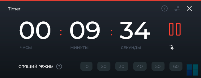 Установить таймер можно вручную в диапазоне от 10 секунд до 24 часов, либо воспользовавшись готовыми предустановками (от 10 до 60 минут). В случае необходимости отсчёт всегда можно поставить на паузу.