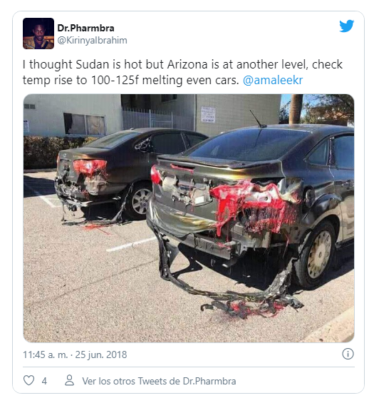 Otro tipo de historia falsa de internet es algo como esto: "En Arizona hace tanto calor, que hasta los coches se derriten"...