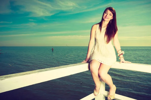 Женщина в платье сидит на мотоскутере — Стоковое фото ...