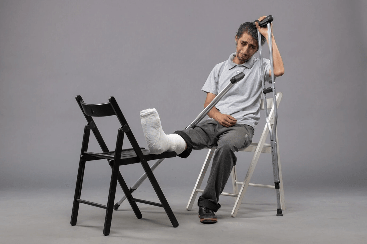 Сидит со сломанной ногой