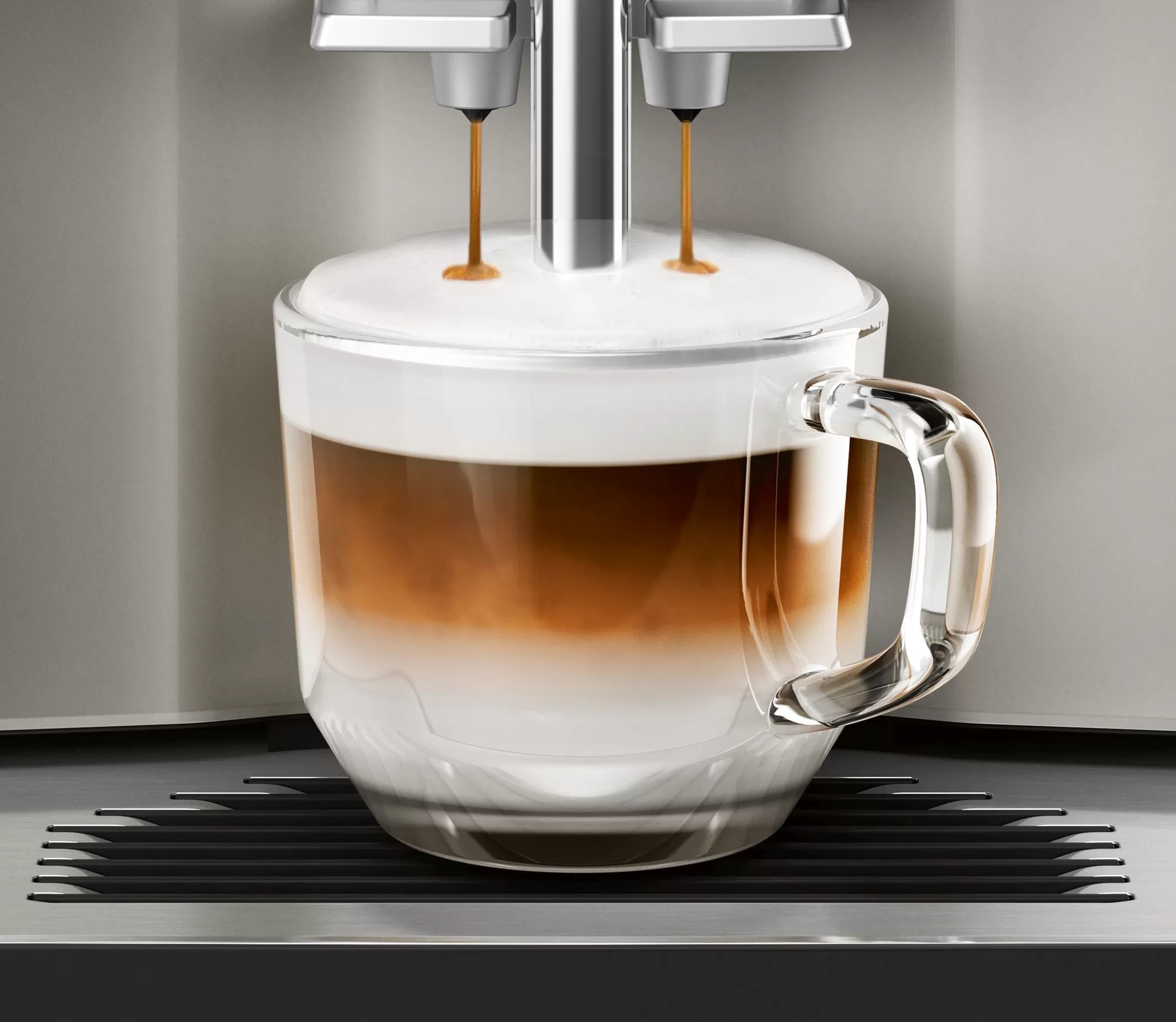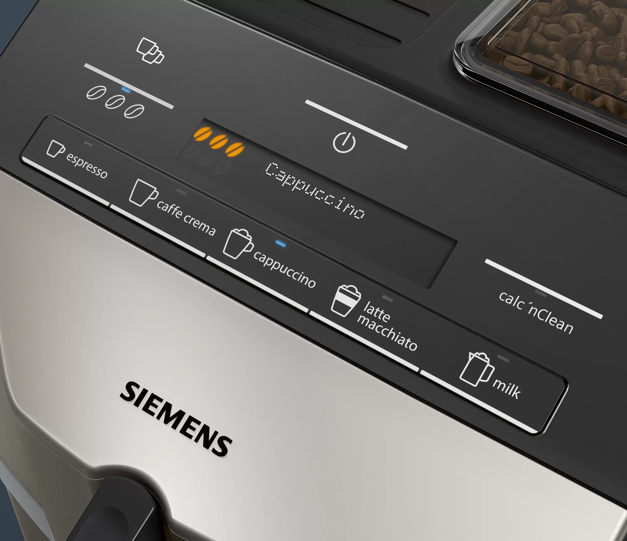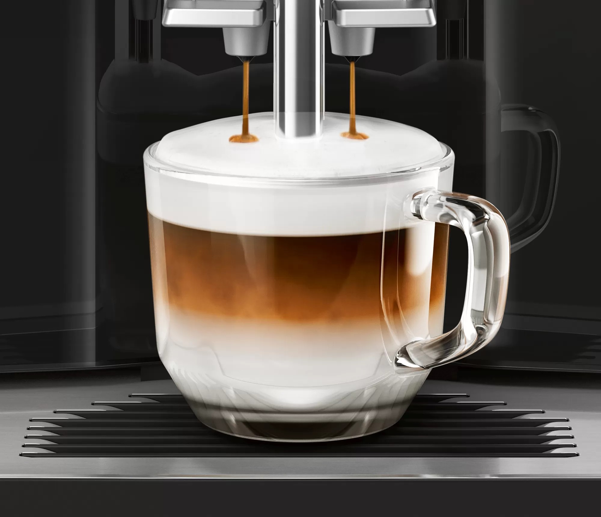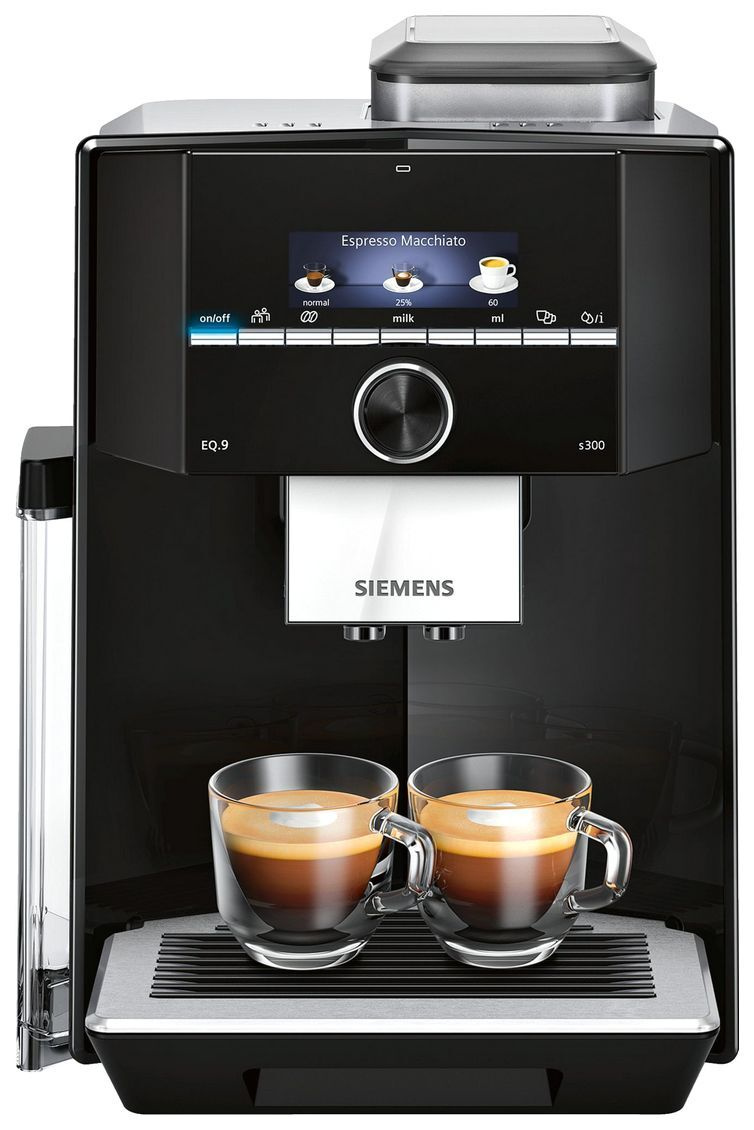 Immergetevi nel piacere di un buon caffè . Con la macchina da caffè EQ . 300 di Siemens , completamente automatica dal chicco alla tazza, potete ottenere le specialità a base di caffè premendo un tasto .