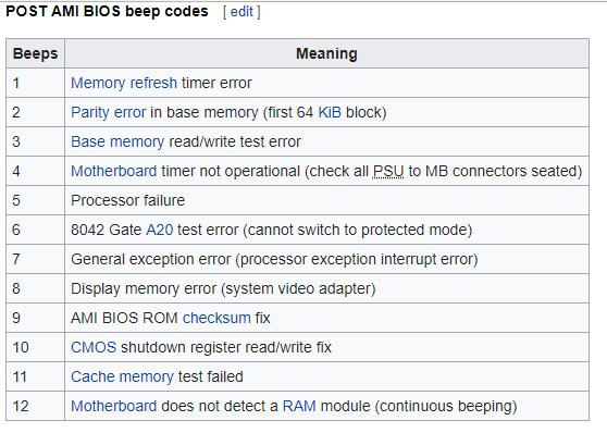 Сигнал bios три коротких 82 фото