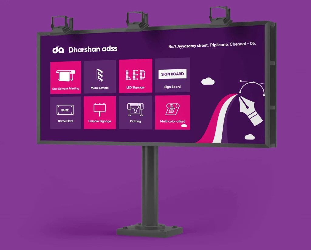 In the symphony of signage solutions, Dharshan Adss orchestrates a melody that resonates with excellence. Join us in transforming visions into signboard marvels. Illuminate your path to success with the pioneers of the craft. Ready to craft your dreams in metal, lights, and vinyl? Explore the world of Dharshan Adss.