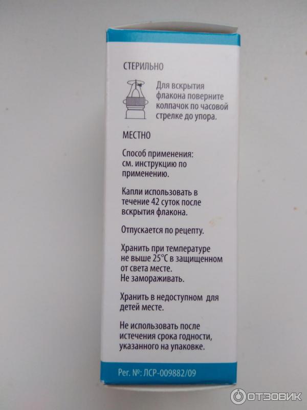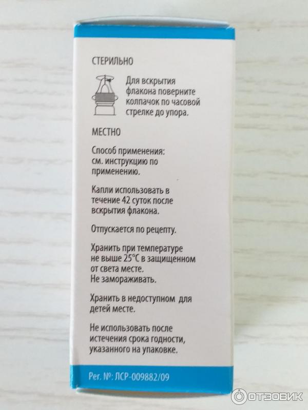 Срок годности: 3 года . Капли использовать в течение 42 суток после вскрытия флакона . Не использовать по истечении срока годности указанного на упаковке . Условия отпуска . По рецепту . Производитель