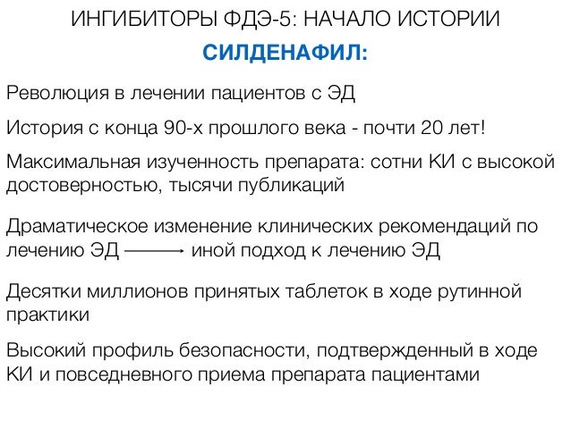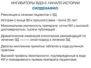Виагра . (силденафил) - . первый представитель иФДЭ-5 . Одновременно с осознанием органической природы подавляющего большинства случаев эректильной дисфункции (ЭД) произошел революционный . . .