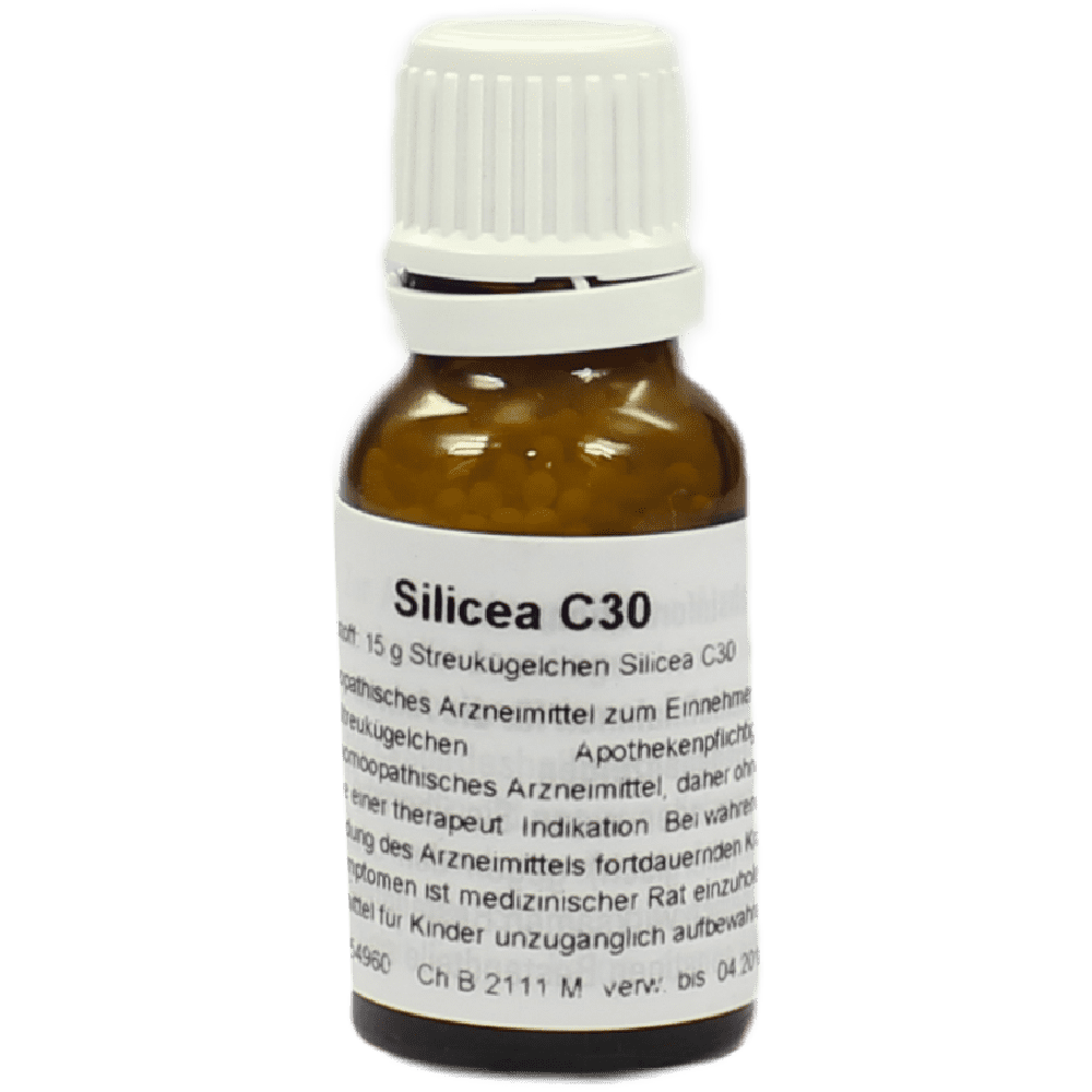 СИЛИЦЕА 30 СН Произход Химичен - силициев окис . Тропизъм Кожа и подкожна тъкан . Растеж и хранене . Нервна система . Имунна система . Симптоми Усещане за забито трънче или треска . Обща хиперестезия със стряскане при лек шум, чувствителност към студ, най-вече в главата . Остри, боцкащи, невралгични болки, често със съпътстващ възпалителен процес .