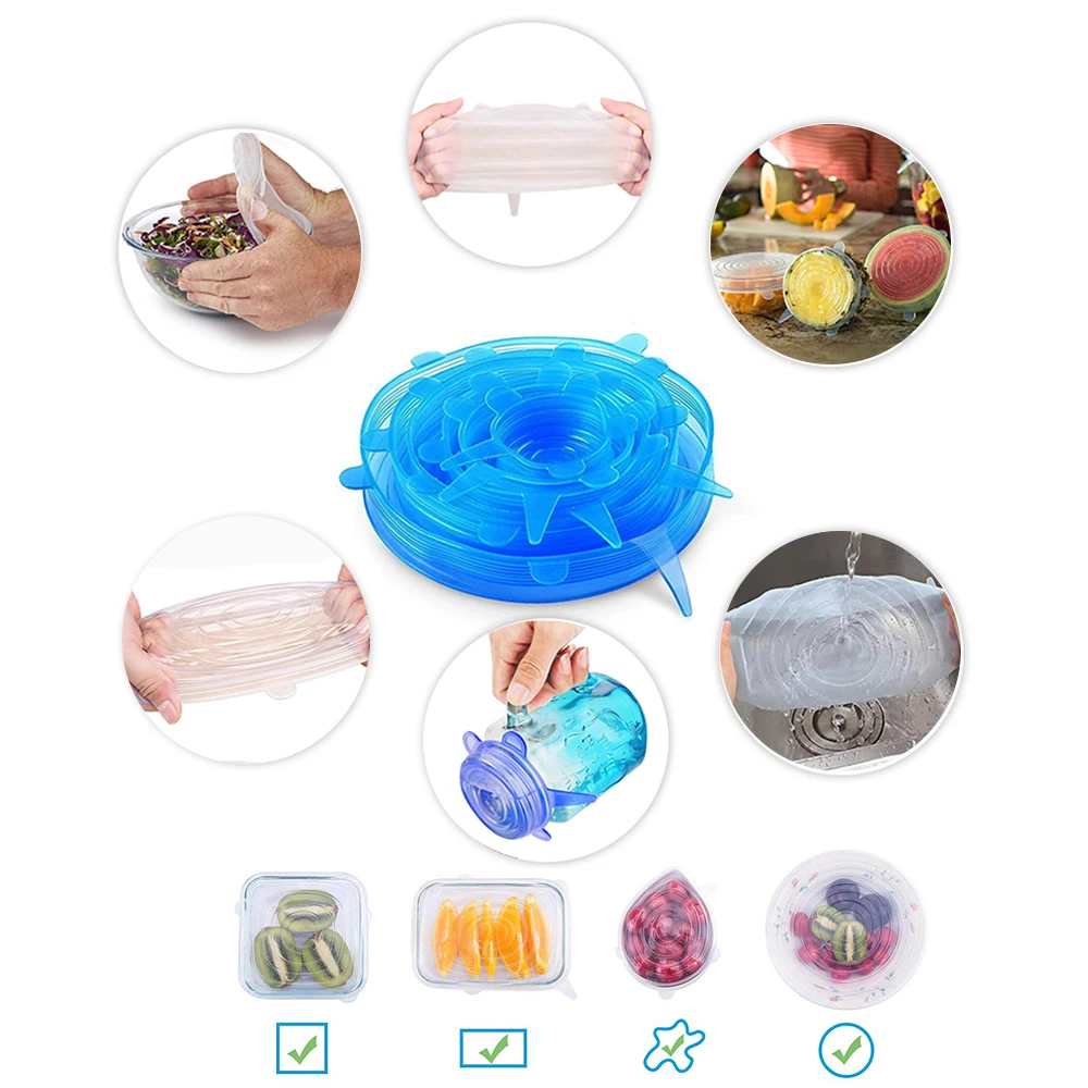 «Silicone Cover Stretch Lids Reusable Airtight Food Wrap Covers Keeping Fresh Seal Bowl Stretchy Wrap Cover Kitchen Cookware» по лучшей цене на рынке! Всего за 7$ (665рублей)