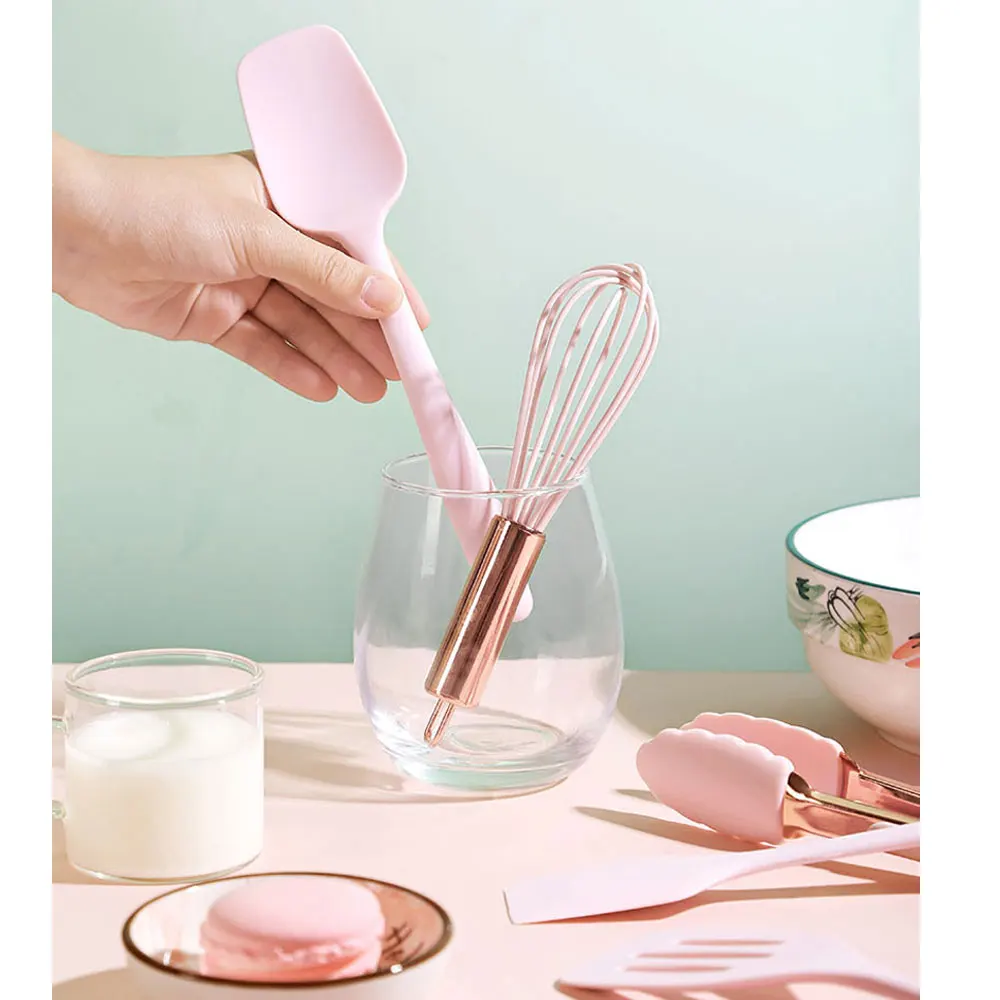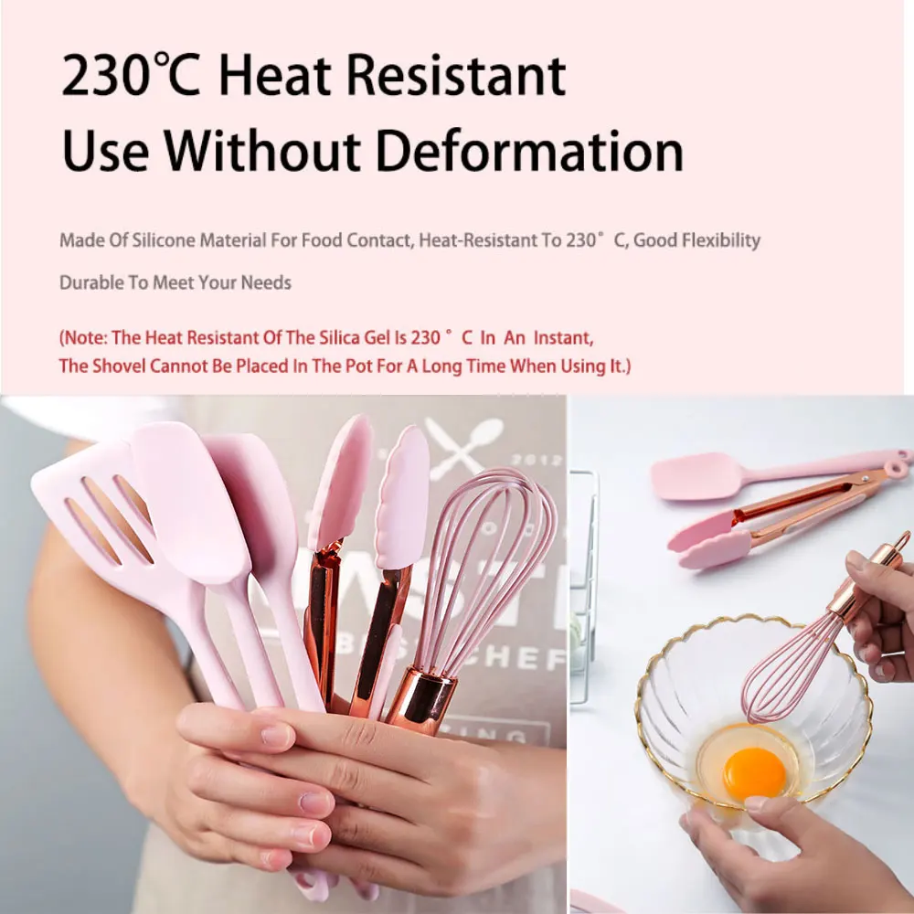 Silicone Kitchenware Utensils Set Kitchen Cooking Non-Stick Cookware Spatula Colander Mini Baking Tool Pink Handle Cooking Set - Купить с бесплатной доставкой