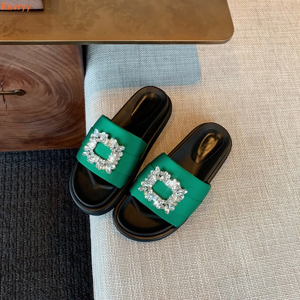 "Silk One Word Belt Sandals Bling Bling Crystal Square Button Flat with Round Toe Slippers Platform Open Toe Women Summer Sandals" * Buy Now Just For 48$