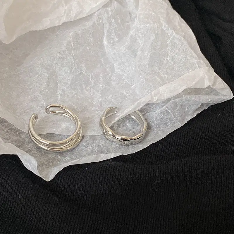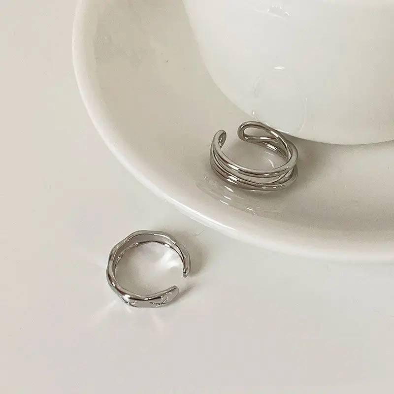 Silver Color Irregular Hollow Double Line Geometric Set Ring Female Simple Unique Design Fashion Adjustable Jewelry Gifts - Купить с бесплатной доставкой