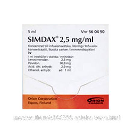 Симдакс концентрат д/приг . р-ра д/инф . 2 .5 мг/мл по 5 мл №1 во флак . : инструкция . . .