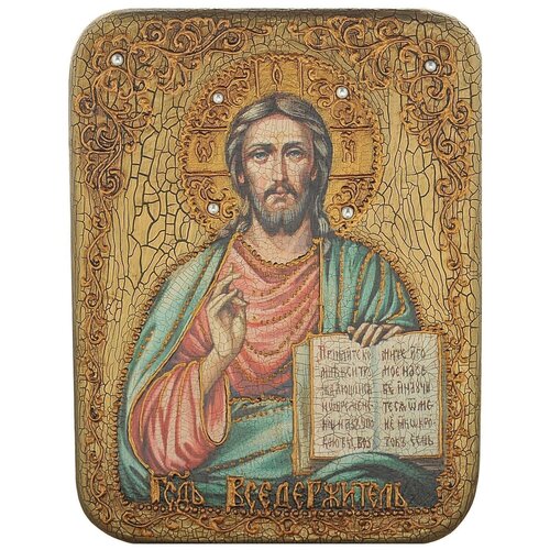"Yüce Tanrı" Simgesi Boyutlar: uzunluk - 123 mm genişlik - 123 mm yükseklik - 123 mm Malzemeler: ahşap diğer malzemeler lekeli meşe inci"Yüce Tanrı" Simgesi Boyutlar: uzunluk - 123 mm genişlik - 123 mm yükseklik - 123 mm Malzemeler: diğer malzemeler ahşap, bataklık meşesi, inciSimge, görüntünün yüksek kalitesini ve uzun süreli korunmasını sağlayan UV baskı kullanılarak sunta üzerine yapılmıştır. Yaldız altın varak (imitasyon altın varak) kullanılarak yapılır. İkon, doğal ahşaptan yapılmış ve basma kakmalı, camlı dar bir ikon kasası çerçevesine yerleştirilmiştir. Duvara monte edilen simge Rus Ortodoks Kilisesi'nin kanonlarında yazılmıştır.