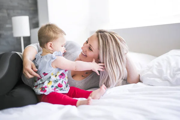 Симпатичная малышка на постели