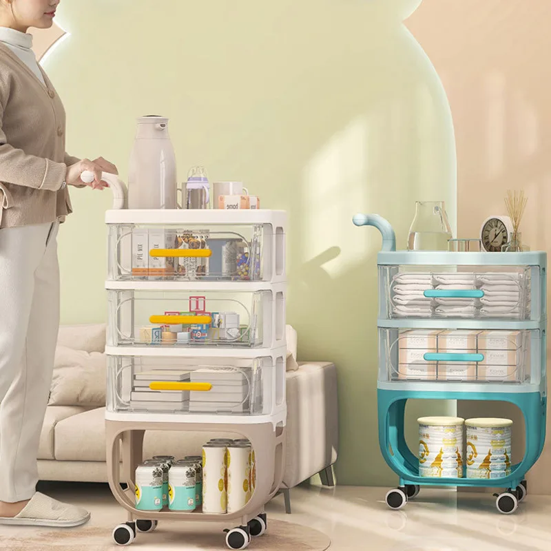Simple Mobile Wheels Trolley Large Capacity Bedroom Snack Storage Rack Multi-functional Baby Products Organization Storage - Купить с бесплатной доставкой