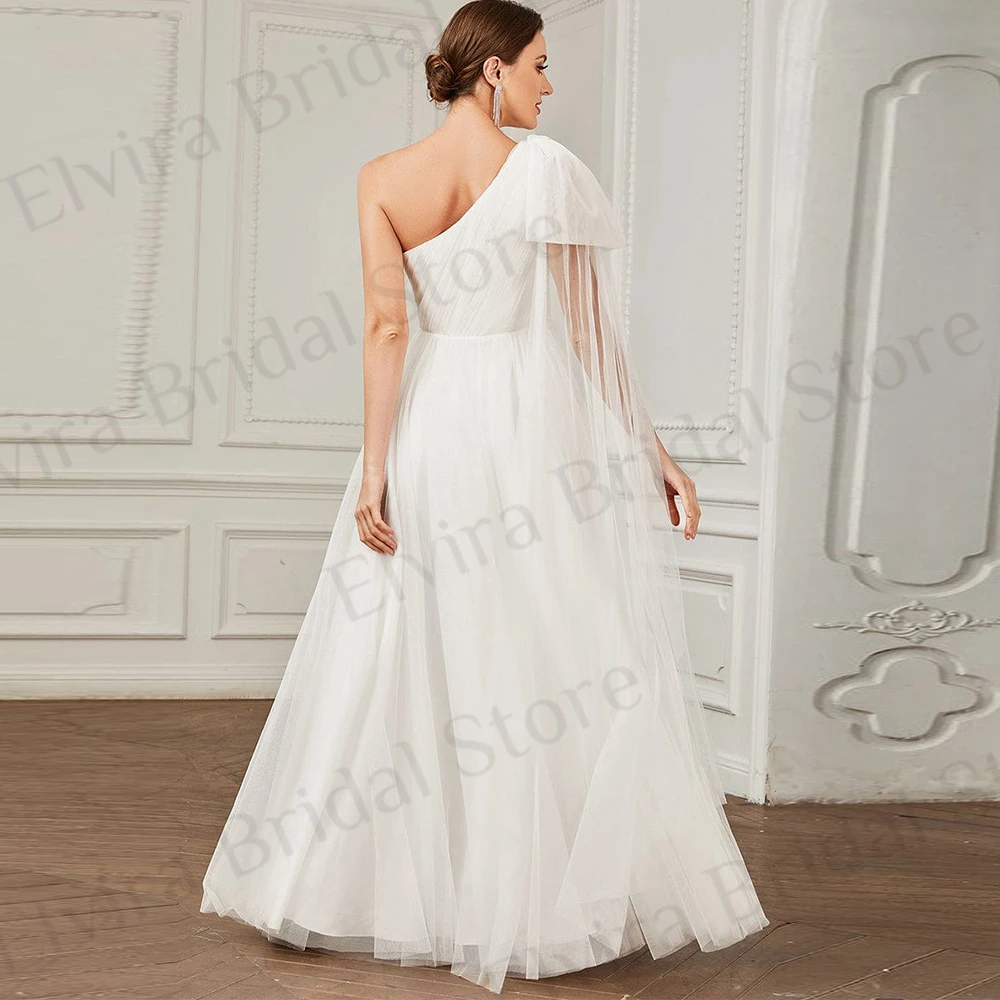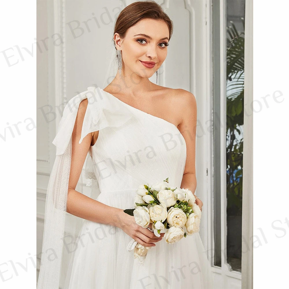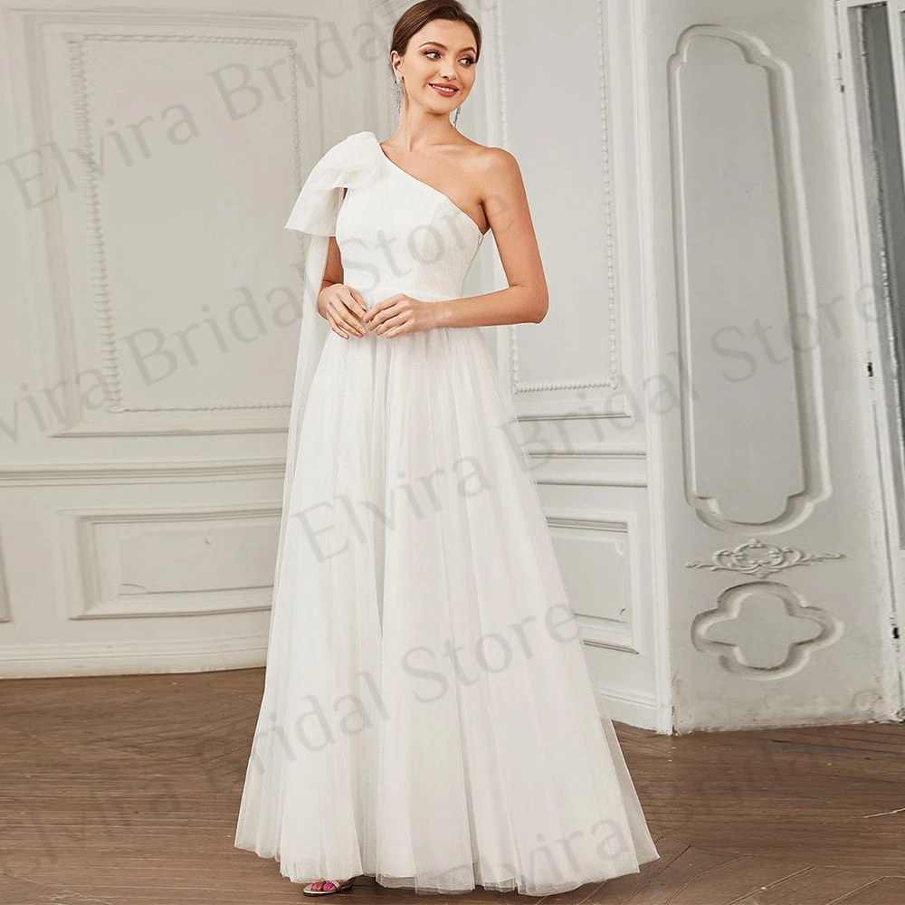 HIJHeAKaAHere you can buy Simple One Shoulder Wedding Dresses Brides A-Line with Sweep Train Bow Strapless Backless Tulle High Quality Robe De Mariee with free delivery to your post office.
