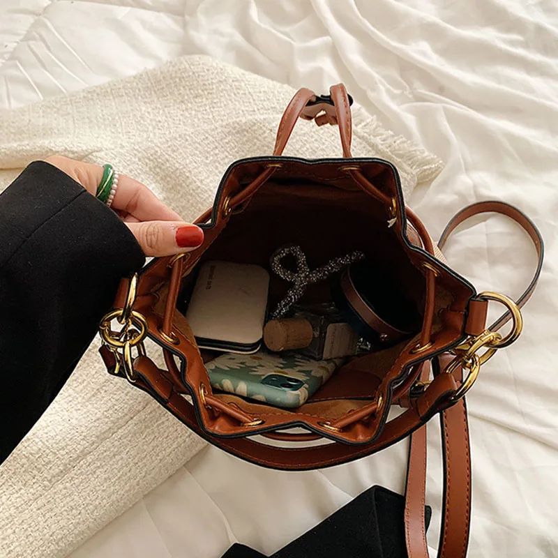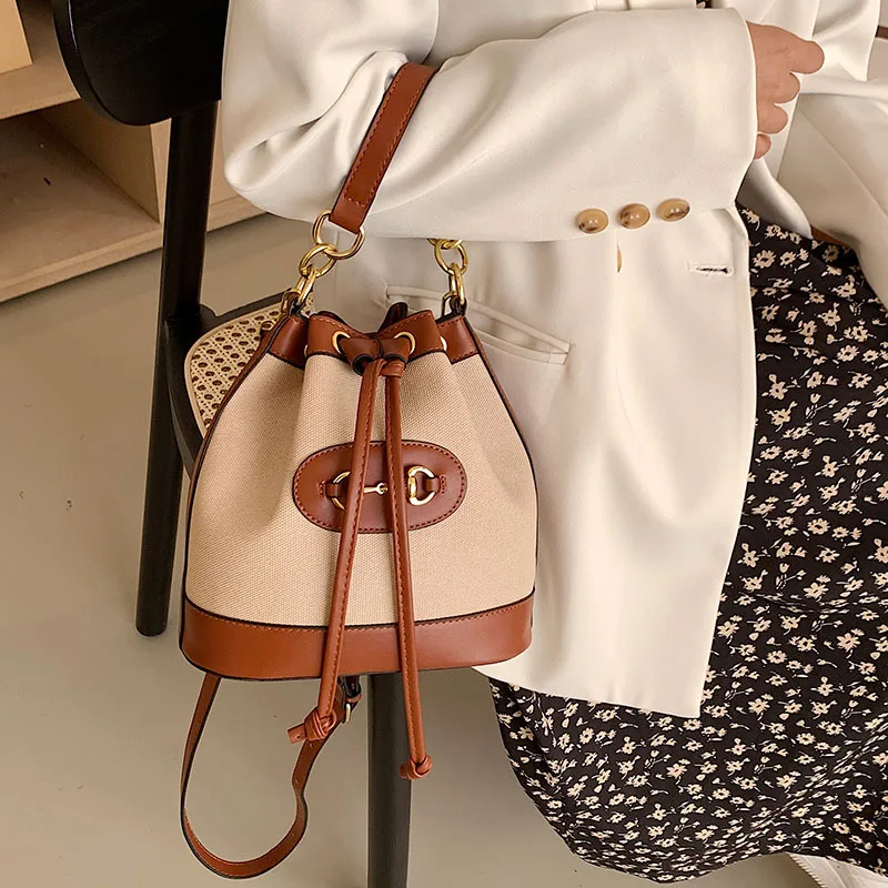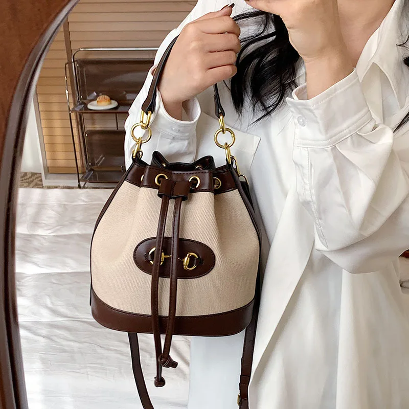 Simple Portable Handbag Trendy Retro Contrast Shoulder Messenger Bags Canvas Drawstring Crossbody Commute Satchel Travel Storage - Купить с бесплатной доставкой