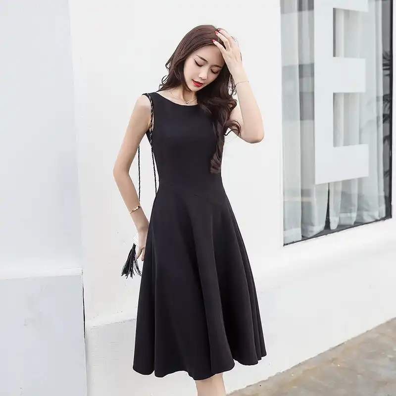 Hong Kong Style Elegant Sexy Hot Girl Sheath off-Shoulder Backless Irregular Black Mermaid Strap Dress for Women Summer