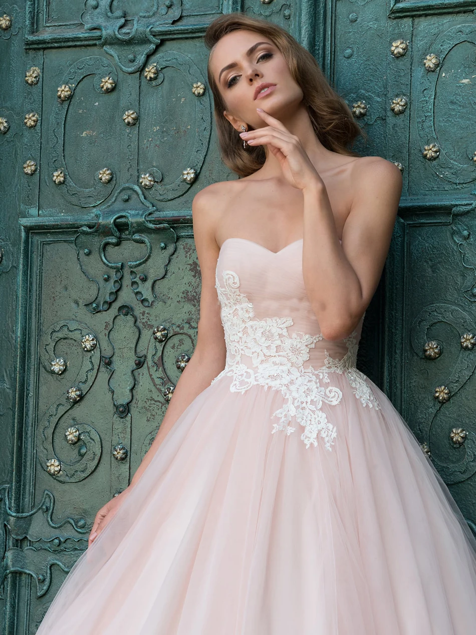 «Simple Tulle Sweetheart Wedding Dress Strapless Appliques Lace-Up Long Bridal Gown Vestidos De Novia robe de mariée свадебное» по лучшей цене на рынке! Всего за 103$ (9785рублей)