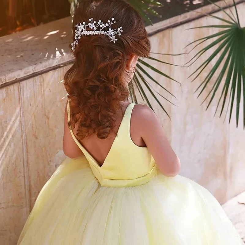 Simple Yellow Aline Girl Princess Flower Girl Dresses Birthday Pageant Robe De Demoiselle First Communion Colorful