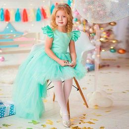 Children's Bow Sequined Prom Wedding Bridesmaid Dress Girl Flying Sleeves Multi-Layer Mesh Princess Dress