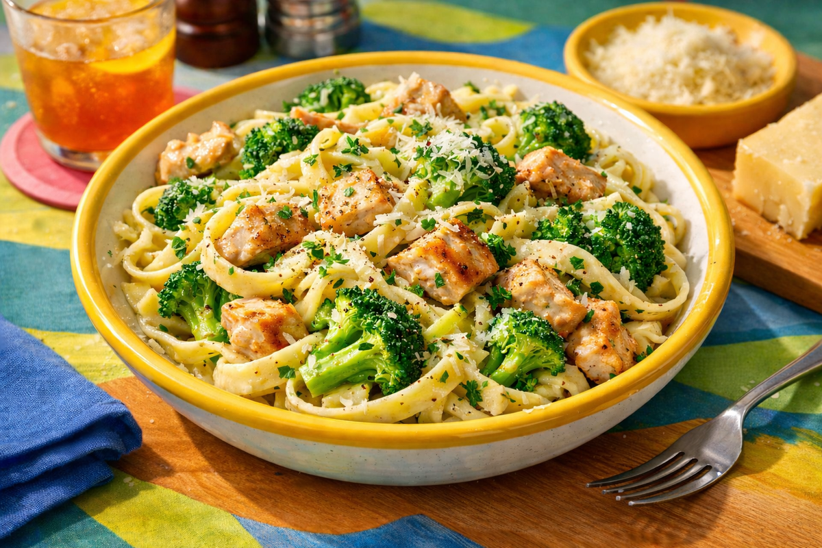 Галактический лембас школы ВолкаПаста Альфредо с курицей и брокколи
