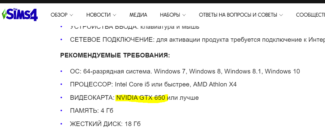 Sims 4 Видеокарта