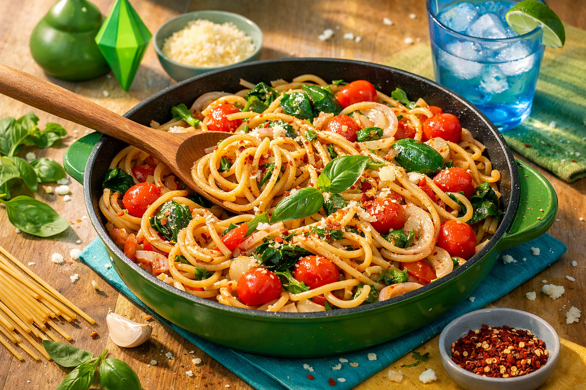 Вы когда-нибудь задумывались, что едят симы после рабочего дня, пожара на кухне и внезапного визита грабителя? Это не просто рецепт, а настоящий чит-код для жизни: одна сковорода, минимум действий и результат, который возвращает настроение в зелёную зону. Пока макароны впитывают томатный соус, кажется, что мир наконец-то работает правильно. И да — никакого навыка «Гурман» не потребуется, только желание поесть быстро и вкусно.