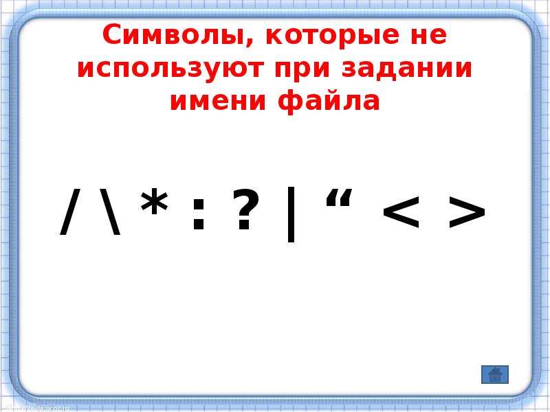 Символы которые нельзя использовать