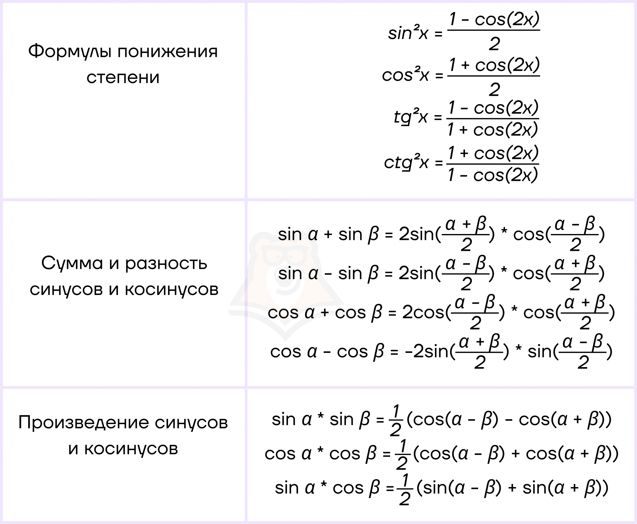 Sin 2 l 2 формула