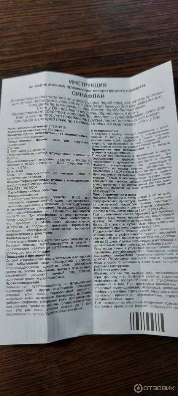 Синафлан мазь - Озон - официальная инструкция по . . .