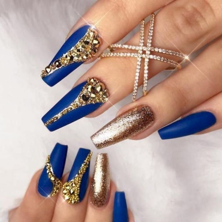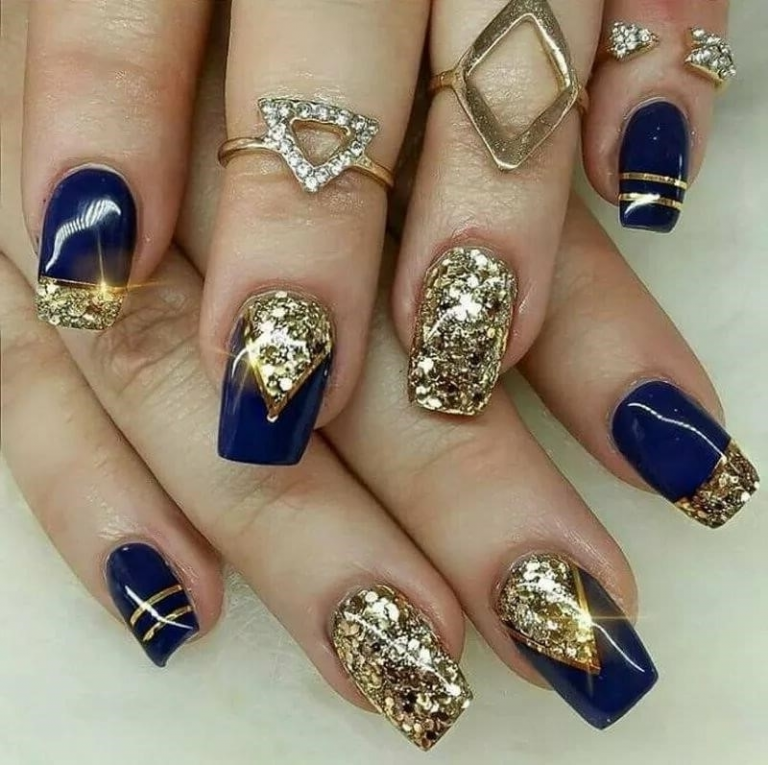 Сине Золотой Маникюр Фото
