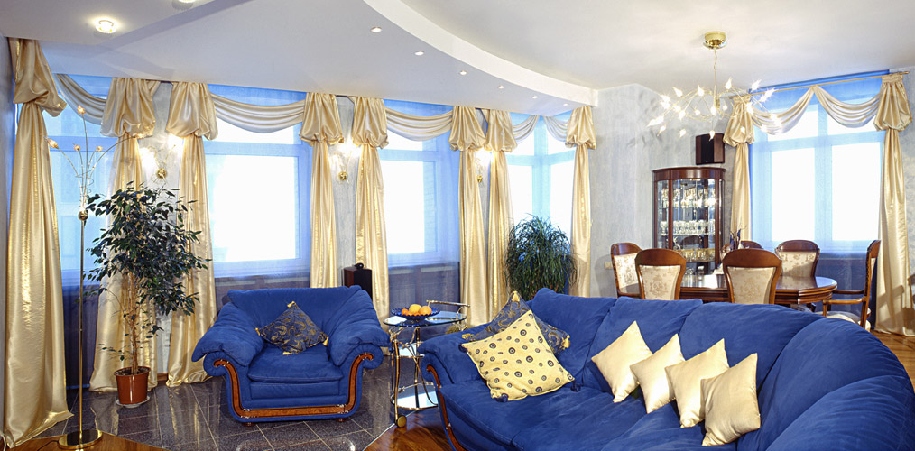 Сине Золотые Обои В Интерьере Фото
