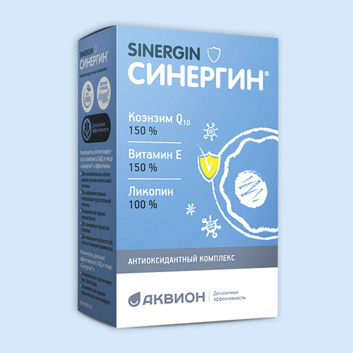 Синергин - антиоксидантный комплекс, содержащий шесть мощных природных антиоксидантов в оптимальных дозах, которые нейтрализуют свободные радикалы и предотвращают или уменьшают оксидативный стресс.