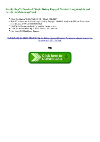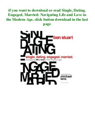 Single , Dating , Engaged , Married : Navigating Life and Love in the Modern Age free pdf illustrates the meaning behind the title . It is relatively hard to download Single , Dating , Engaged , Married : Navigating Life and Love in the Modern Age pdf files online today compared to the past .Access this book along with other best books on finding your . . .