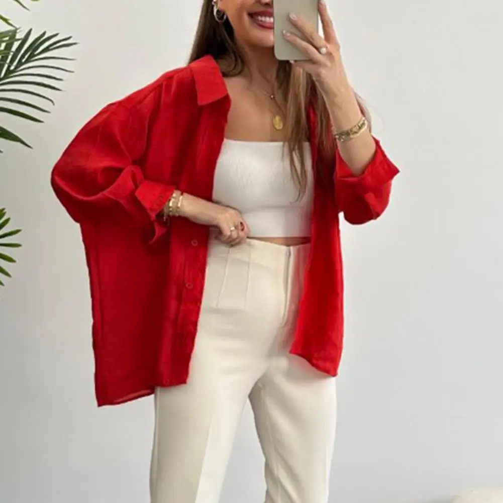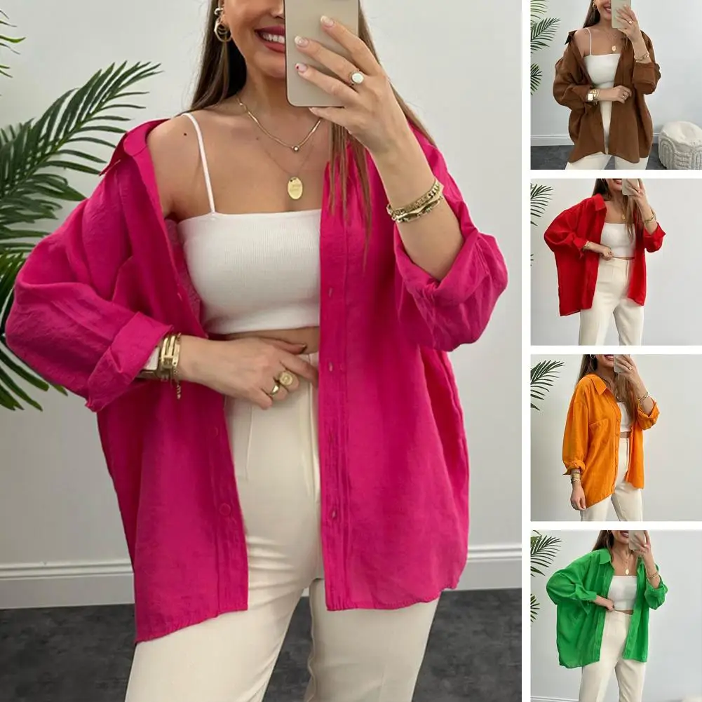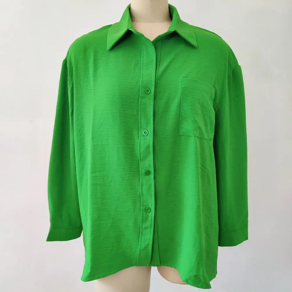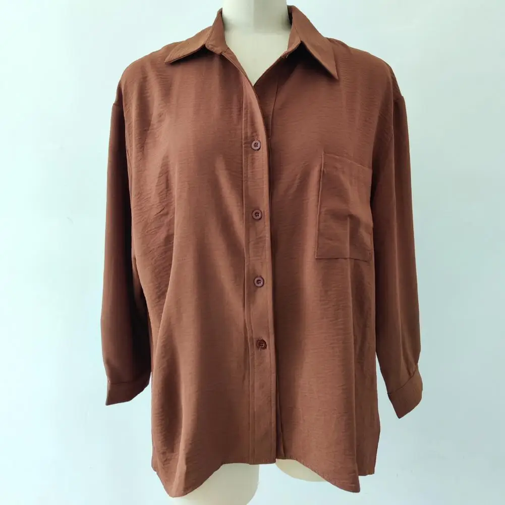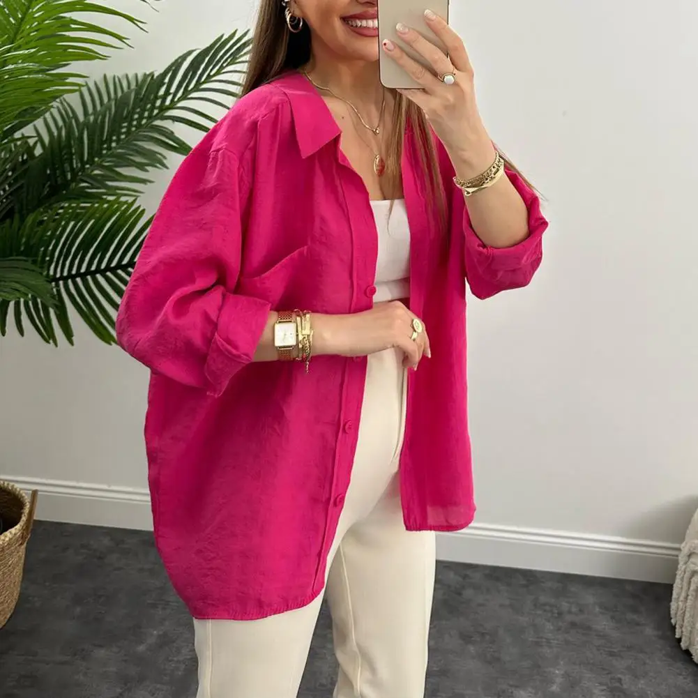 "Single-breasted Spring Blouse Chic Mid-length Women's Blouses Loose Fit Single-breasted Buttoned with Turn-down for Spring" * Buy Now With Free Shipping Just For $7