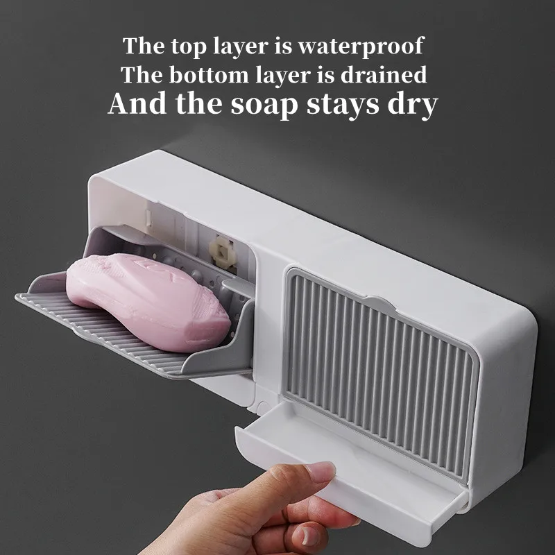 Single/Double Compartment Wall-mounted Soap Box Large Capacity Non-perforated Draining Rack White Bathroom Storage Box Accessori - Купить с бесплатной доставкой
