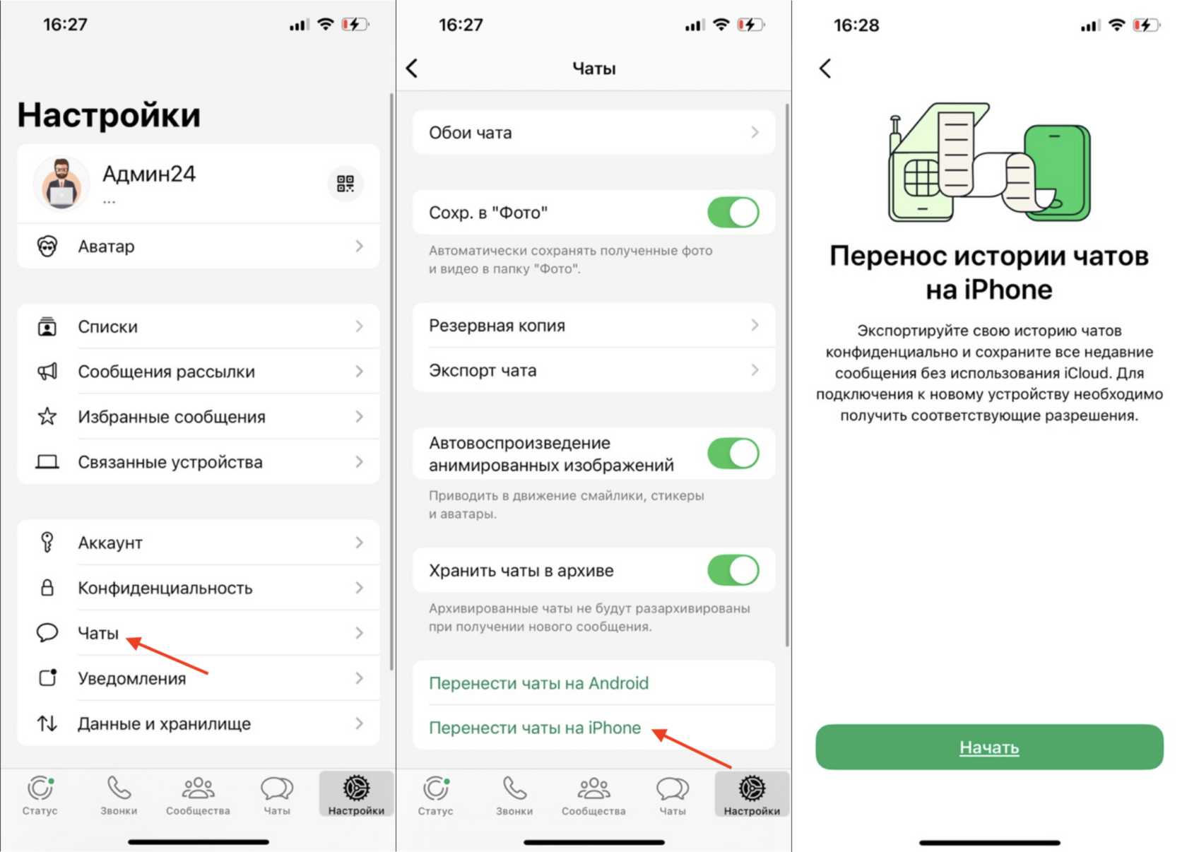Синхронизация ватсап айфон