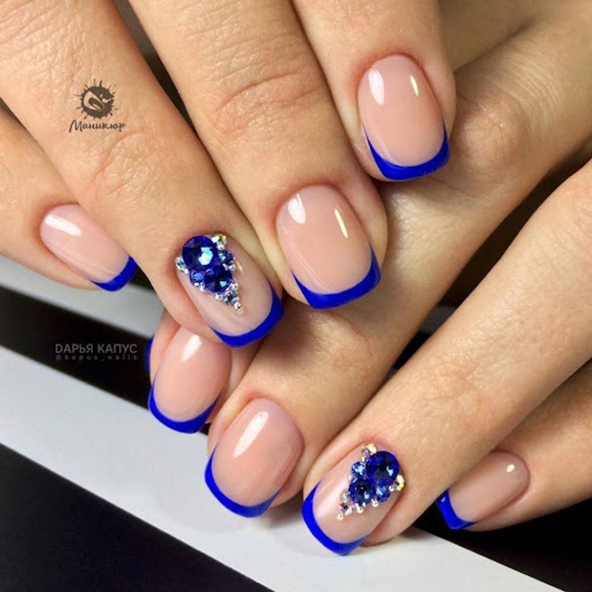 Синий Френч С Цветами Фото 148 фотографий