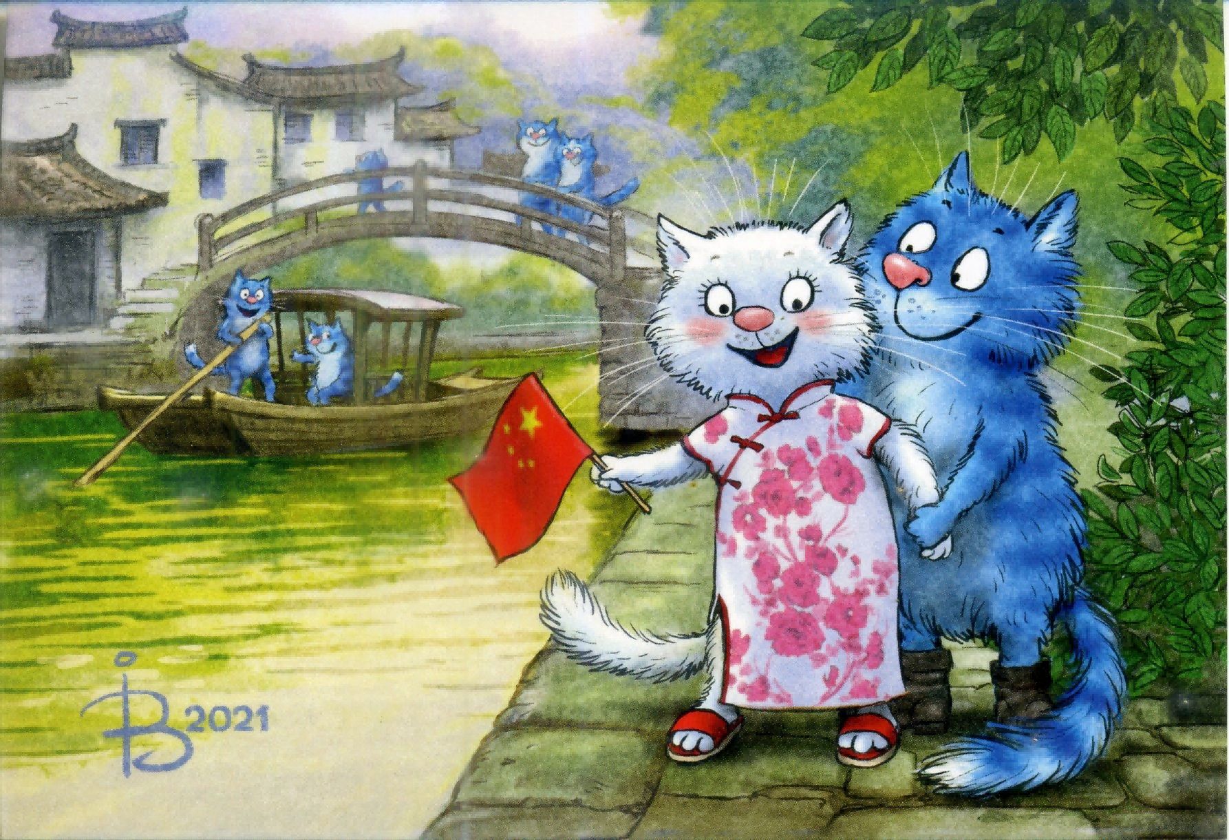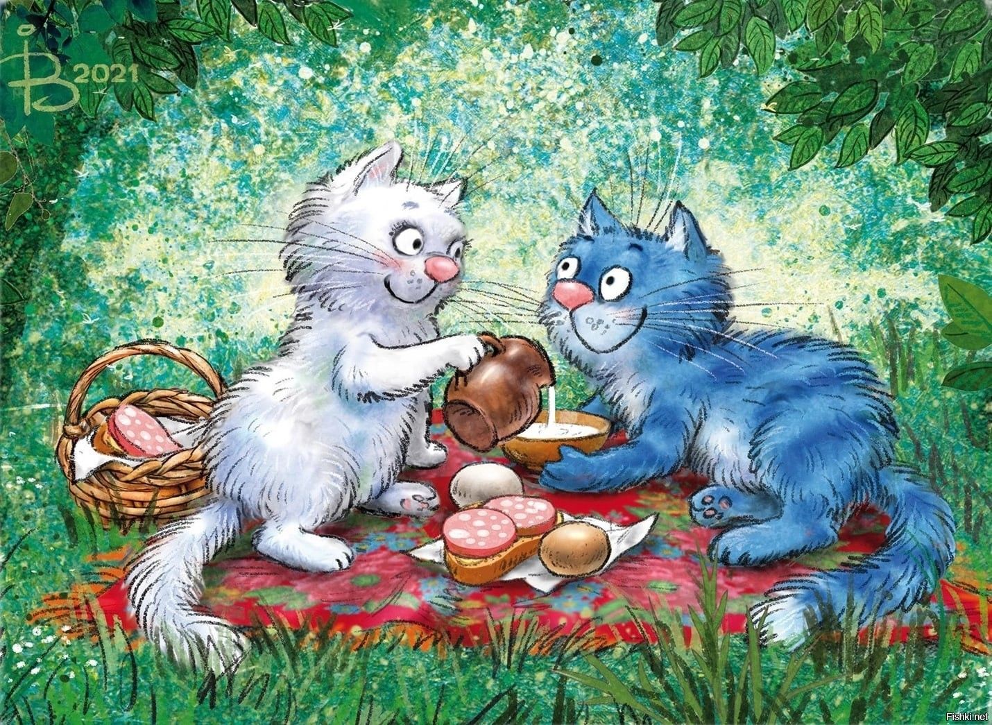Синий Кот И Кошка Картинки