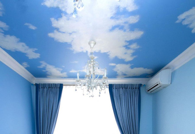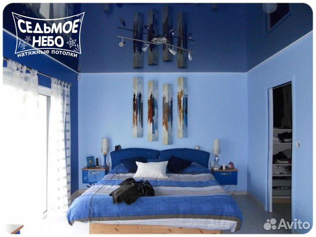Синий натяжной потолок, фото, цена