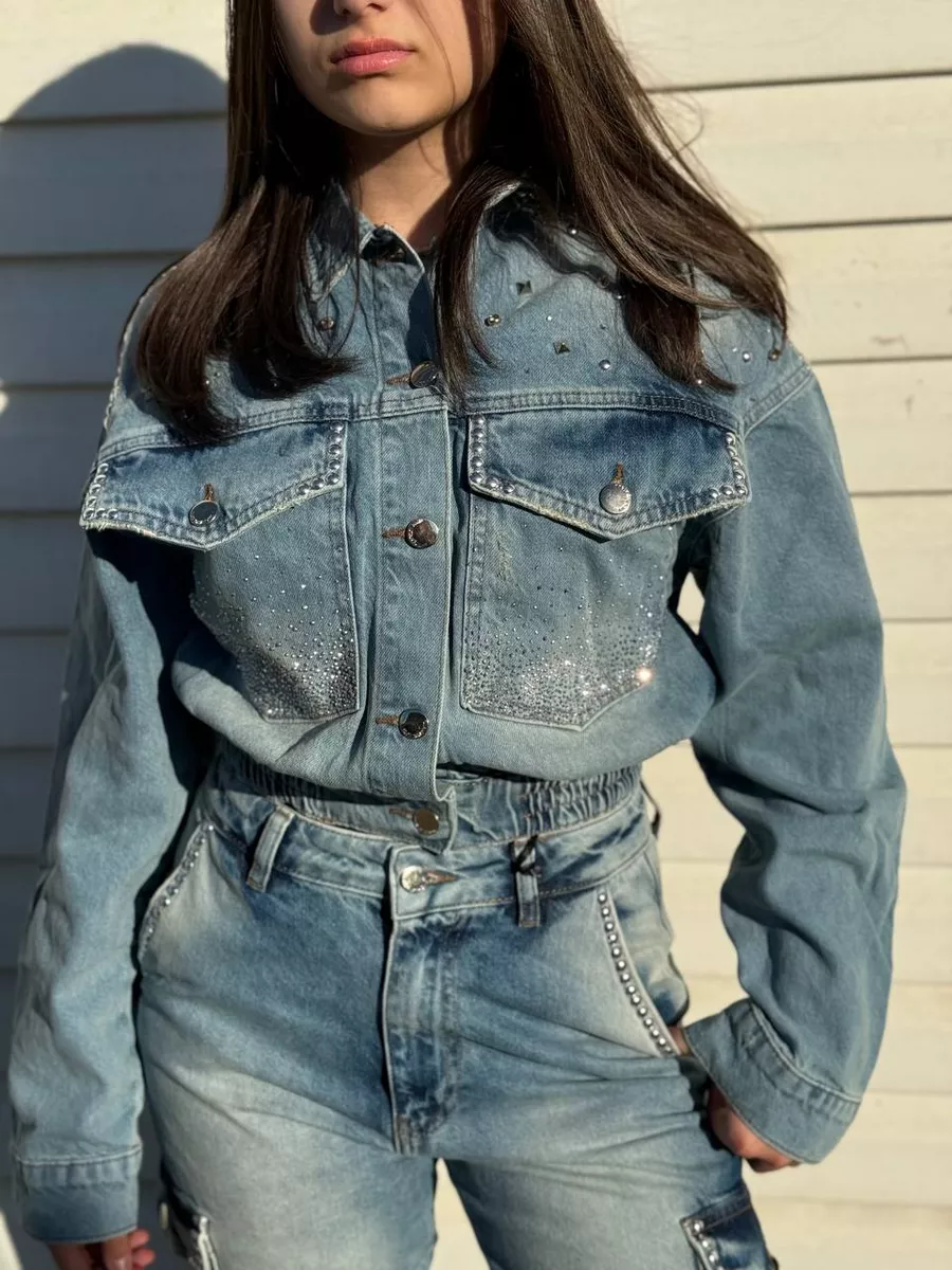 Синий джинсовый костюм 88 фотографий