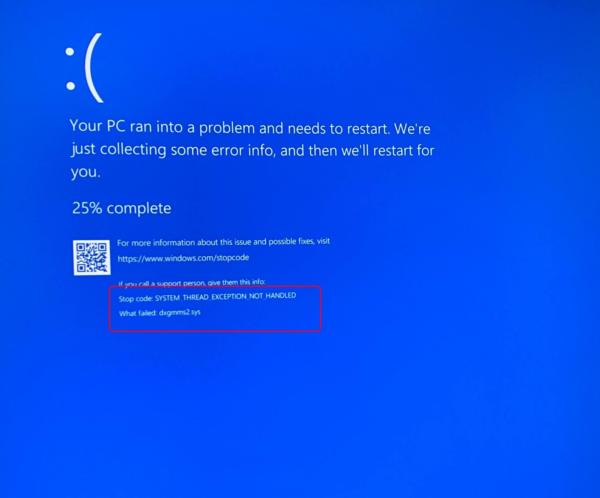 Синий экран thread exception not handled 108 фото