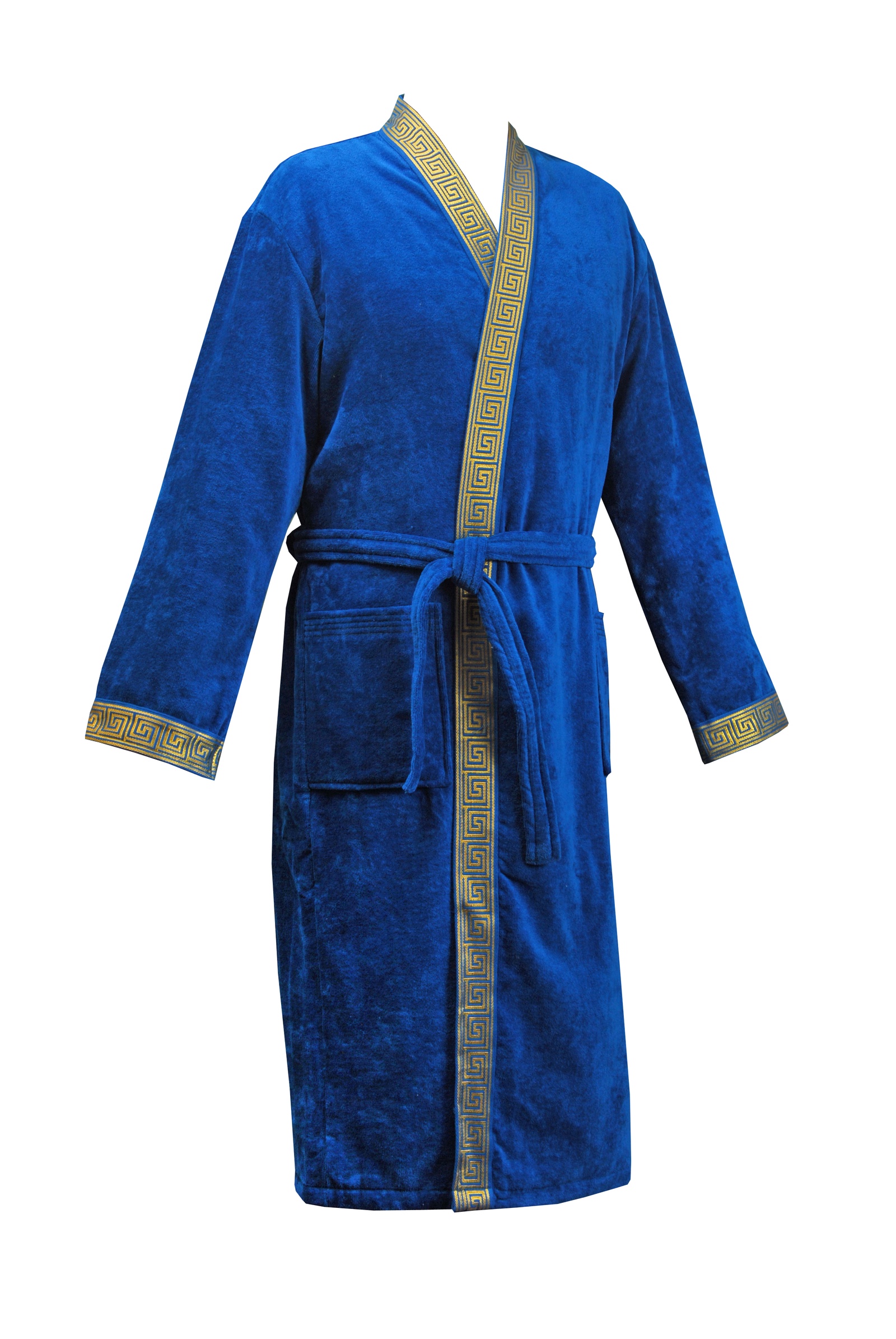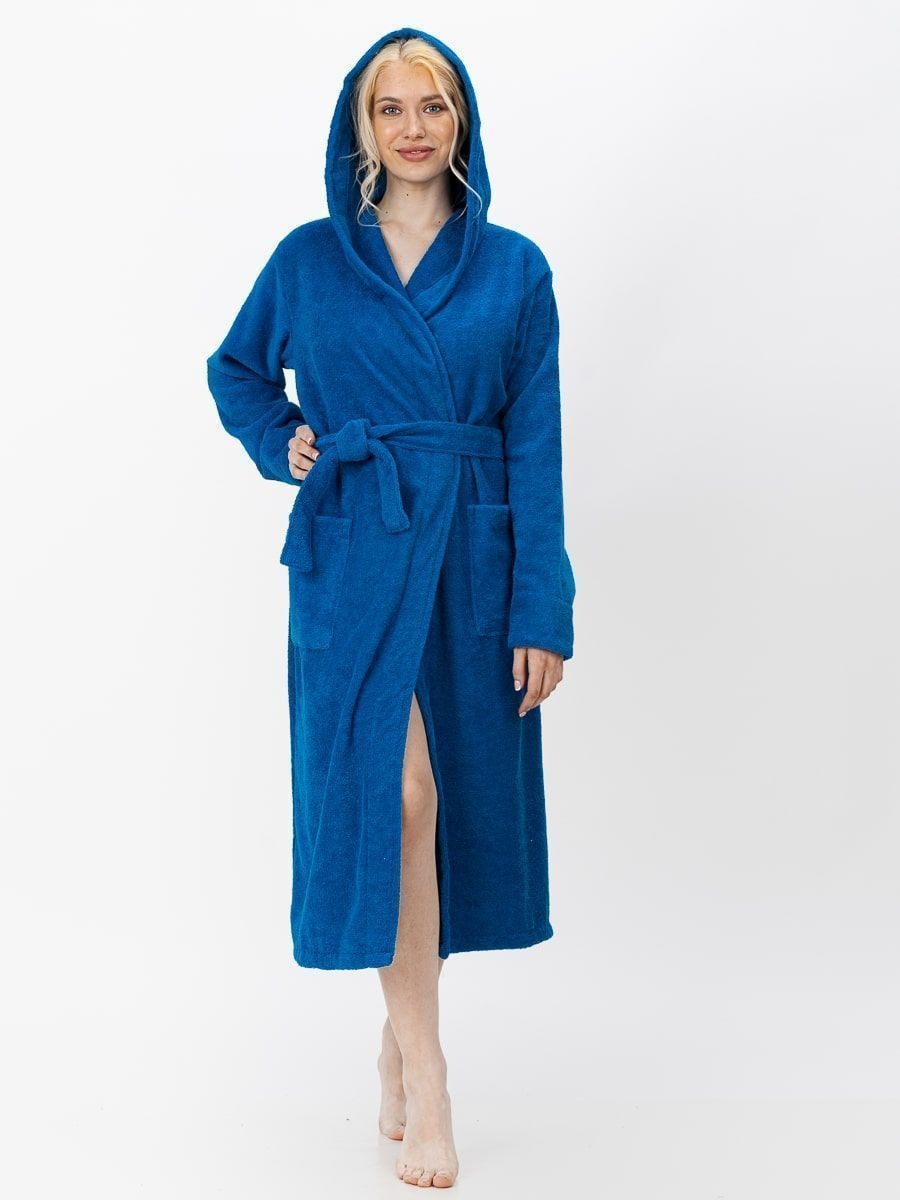 Синий махровый халат