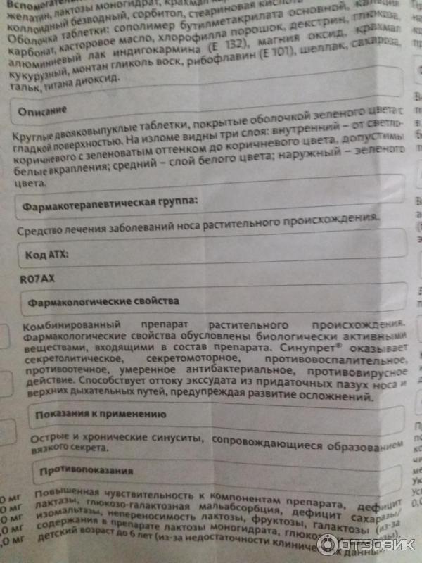 Синупрет таб . п/о - инструкция, показания к применению, условия отпуска . . .