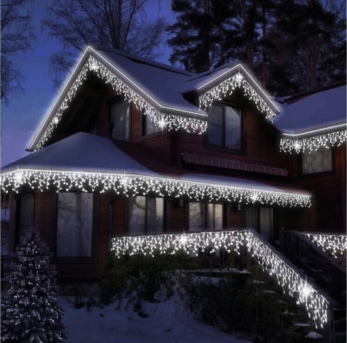 Синяя гирлянда на доме 103 фото