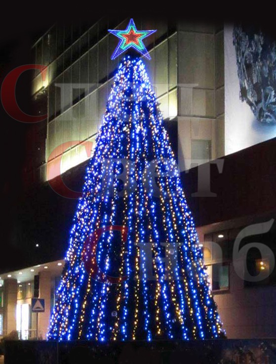 Синяя гирлянда на доме