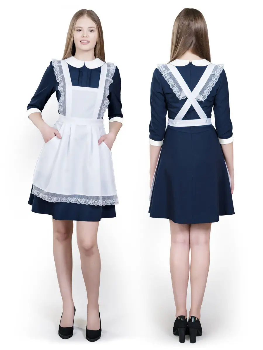 Синяя школьная форма с фартуком 81 фото