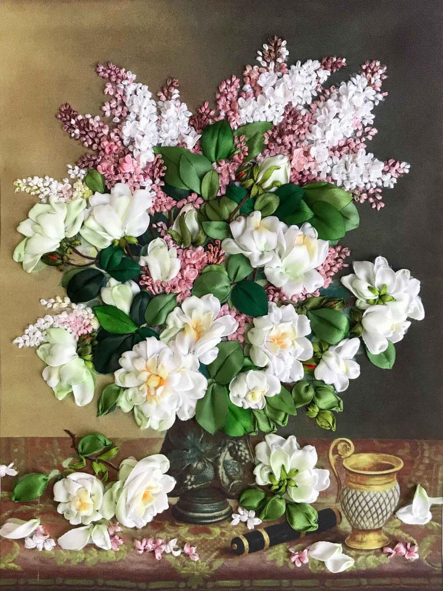 Мастер класс Инессы Тимонионй Вышивка лентами сирени
