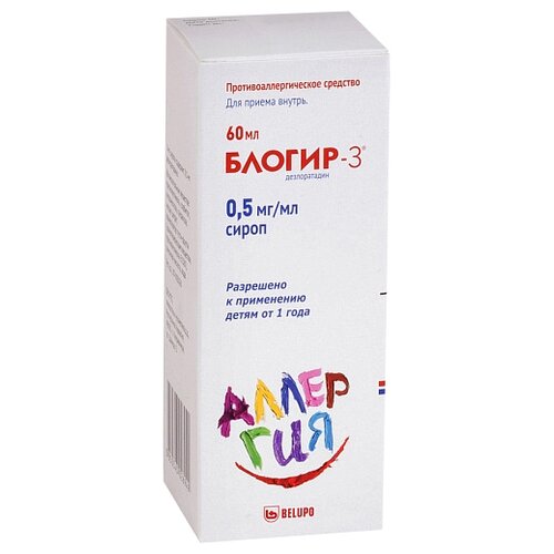 Rhinite allergique (élimination ou soulagement des éternuements, de la congestion nasale, de l'écoulement de mucus par le nez, des démangeaisons du nez, des démangeaisons du palais, des démangeaisons et des rougeurs des yeux, des larmoiements (réduction ou élimination des démangeaisons cutanées, des éruptions cutanées) ; . Hypersensibilité aux composants du médicament ; Grossesse et allaitement; âge jusqu'à 1 an; troubles héréditaires de la tolérance au fructose (dus à la présence de sorbitol dans la composition du médicament). Avec prudence En cas d'insuffisance rénale sévère, le médicament doit être pris avec prudence. Utilisation pendant la grossesse et pendant l'allaitement. L'utilisation du médicament BLOGIR. Le sirop -3 pendant la grossesse est contre-indiqué en raison du manque de données cliniques sur la sécurité de son utilisation pendant cette période. La desloratadine est excrétée dans le lait maternel, c'est pourquoi l'utilisation du médicament pendant l'allaitement est contre-indiquée. 1 ml de sirop contient : substance active : desloratadine 0,5 mg. Excipients : propylène glycol - 150,0 mg, sorbitol - 150,0 mg, hypromellose - 3,5 mg, sucralose - 2,0 mg, citrate de sodium - 1,26 mg, arôme tutti-frutti (substances aromatisantes, propylène glycol E1520) – 0,75 mg, acide citrique – 0,5 mg , eau – q.s. Solution transparente et incolore. Après administration orale, la desloratadine est bien absorbée par le tractus gastro-intestinal et est détectée dans le plasma sanguin 30 minutes après l'administration orale. La concentration maximale Cmax est atteinte après environ 3 heures. Distribution La liaison de la desloratadine aux protéines plasmatiques est de 83 à 87 %. Lorsqu'il est utilisé chez l'adulte et l'adolescent pendant 14 jours à une dose de 5 mg à 20 mg 1 fois par jour, aucun signe d'accumulation cliniquement significative de desloratadine n'a été détecté. La prise simultanée de nourriture ou de jus de pamplemousse n'affecte pas la distribution de la desloratadine (lorsqu'elle est prise à la dose de 7,5 mg 1 fois par jour). Ne pénètre pas la barrière hémato-encéphalique. Métabolisme : Largement métabolisé dans le foie par hydroxylation pour former de la 3-OH-desloratadine combinée à un glucuronide. Ce n'est pas un inhibiteur des isoenzymes CYP3A4 et CYP2D6 et n'est pas un substrat ou un inhibiteur de la glycoprotéine P. Excrétion La desloratadine est excrétée de l'organisme sous forme de composé glucuronide et en petite quantité (moins de 2 %) par les reins et par les intestins (moins de 7 %) sous forme inchangée. La demi-vie T1/2 est en moyenne de 27 heures. Antihistaminique non sédatif à action prolongée. C'est le principal métabolite actif de la loratadine. Bloque sélectivement l'activité des récepteurs périphériques de l'histamine H1. Supprime la libération d'histamine par les mastocytes. Inhibe la cascade de réactions inflammatoires allergiques, y compris la libération de cytokines anti-inflammatoires, notamment les interleukines IL-4, IL-6, IL-8, IL-13, la libération de molécules d'adhésion, comme la P-sélectine. Ainsi, il prévient le développement et facilite l'évolution des réactions allergiques, a un effet antiprurigineux et antiexsudatif, réduit la perméabilité capillaire et prévient le développement d'œdèmes.