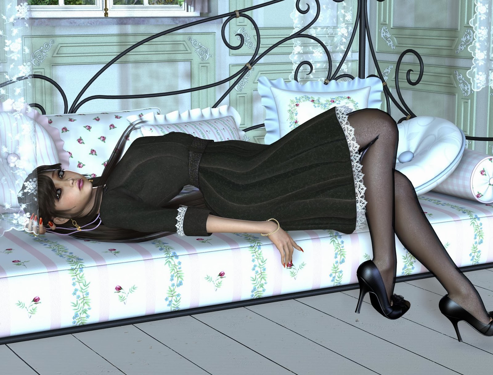 Midnight black dress and lingerie. Sissy slave